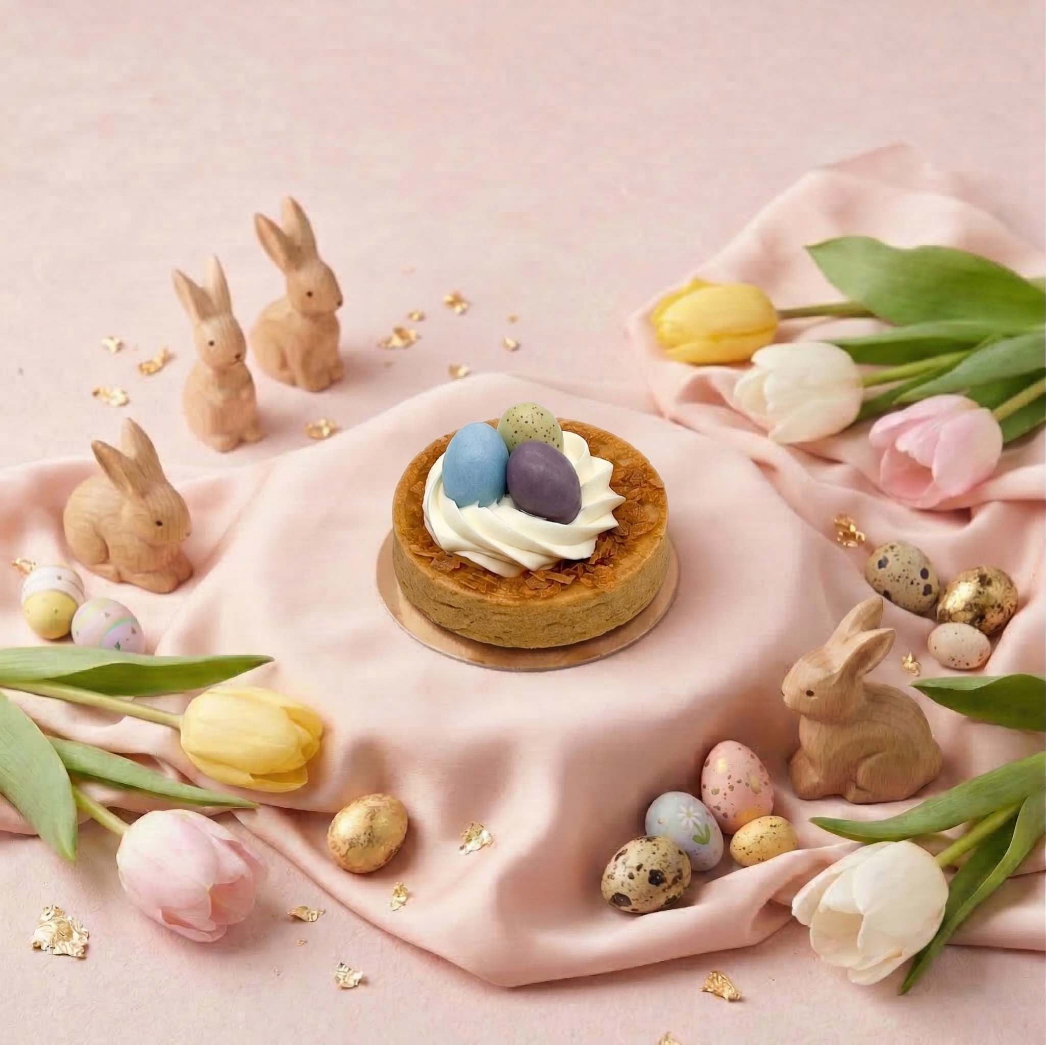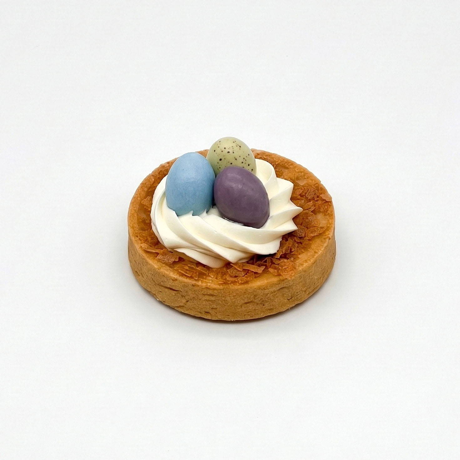 Tartelette Zitrone Vanille im Osternest-Design.